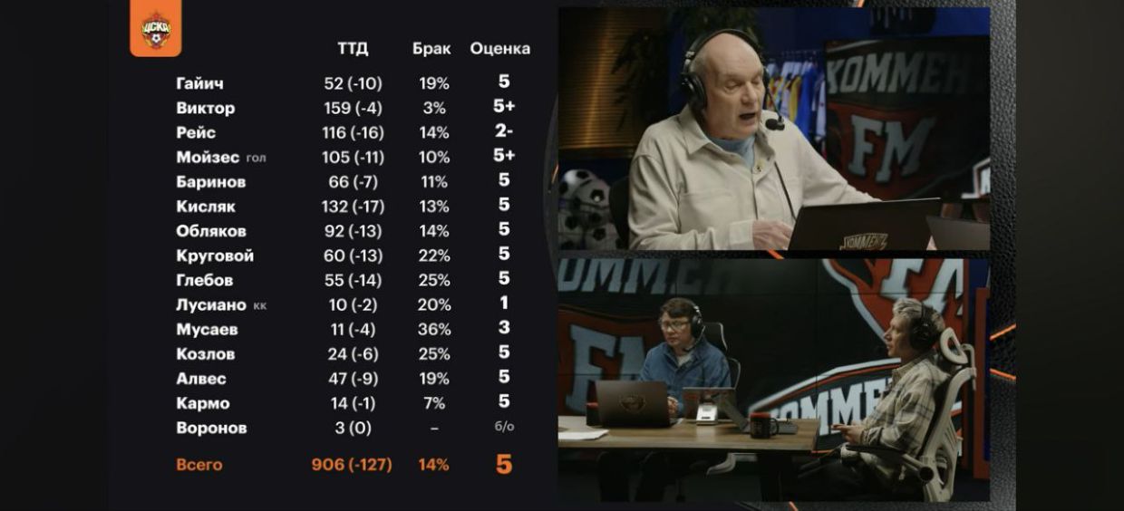 По подсчётам Бубнова, подопечные Фабио Челестини за игру выполнили 906 технико-тактических действий при 14% брака. Команда получила оценку «пять».